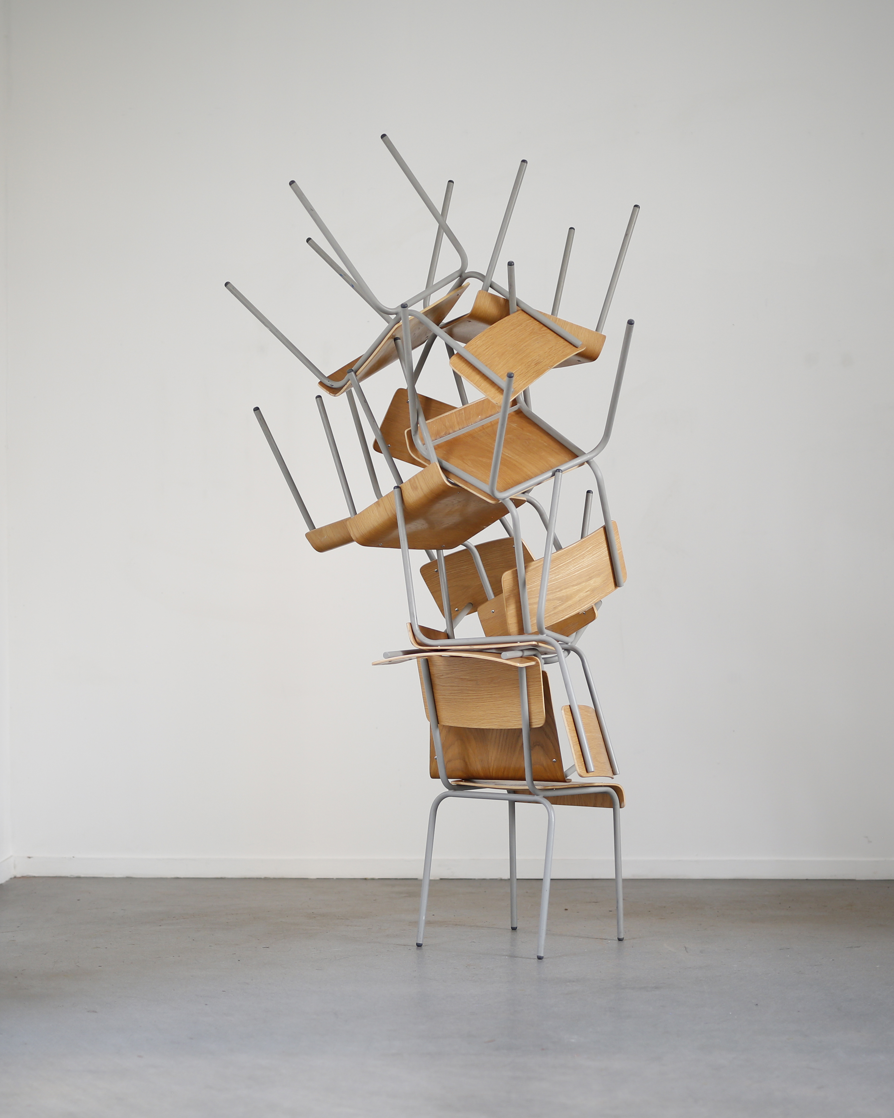 Il y a quelques années, avait eu lieu à Paris l’exposition de Bas Jan Ader. J’avais été impressionné par les formes courtes de ces quelques vidéos performatives, qui tournaient en boucle, répétant des actions de chute de l’artiste. Des années plus tard, je comprends pourquoi. Ces vidéos cristallisaient les morts par chute de mon grand-père tombé d’un toit, et de sa fille, ma mère, tombée dans la Seine avec son vélo. J’ignore ce qu’il y a eu avant la chute, je ne sais pas ce qui cause la chute, et je n’ai pas vu ce qui a eu lieu après la chute. C’est pour tenter d’approcher de ce vide visuel que j’entreprends mes recherches, de manière subjective et instinctive. Je construis des éléments plastiques qui viennent alimenter un récit dans lequel j’invite le public à s’immerger : je réalise des installations qui jouent avec un équilibre ténu ; j’expérimente la chute en me mettant en scène dans des vidéos ; je compile puis je classe des évènements liés à la chute que j’enregistre sur des cassettes audio ; j’assemble des objets du quotidien pour créer des installations en suspens ; je fais des photomontages de chutes issues de l’histoire de l’art ; je recueille des récits de chute que je retranscris ; …
