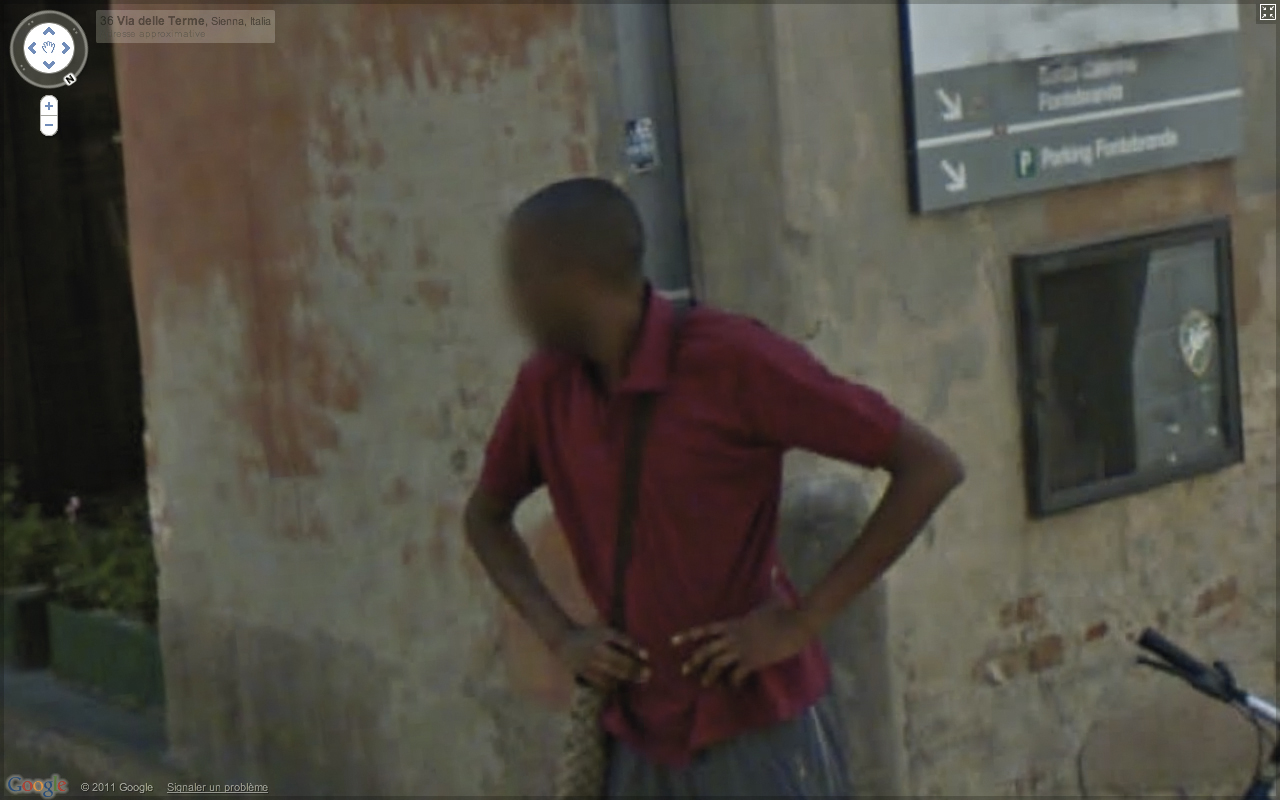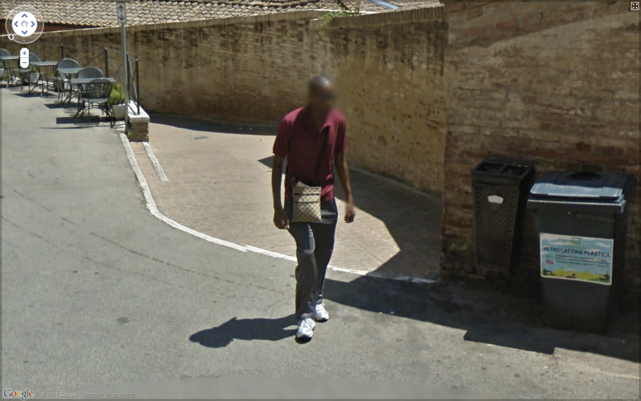 Un beau jour, je décide pour changer d’air d’aller me promener à San Gimignano en Italie. C’est un voyage immobile que je fais grâce à Google Street View. Au fur et à mesure de mes pérégrinations, je croise par hasard et à plusieurs reprises une personne. Je me décide donc à le traquer à travers l’Italie.